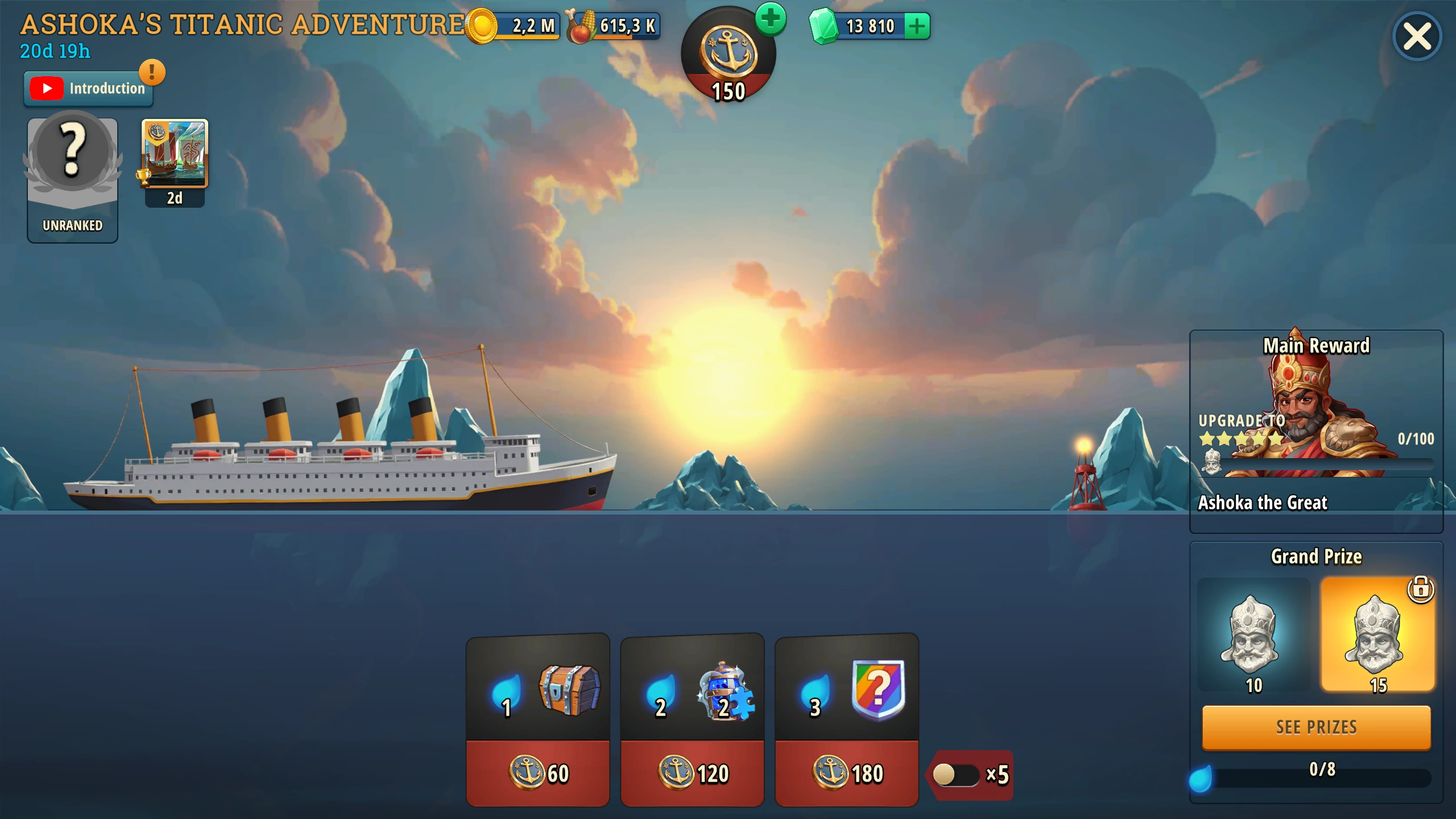 The Journey of the Titanic 2026 features the chest mechanic, where the objective is to open one of the three chests, each containing different rewards. After tapping the event banner, you will visit the main event window: