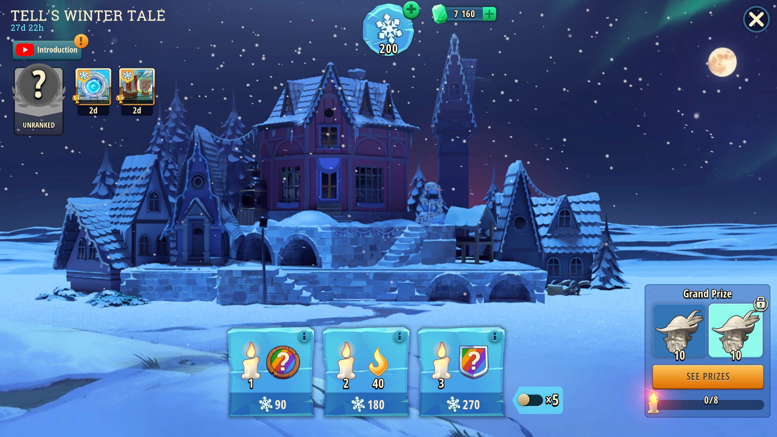 The Tell's Winter Tale features the chest mechanic, where the objective is to open one of the three chests, each containing different rewards. After tapping the event banner, you will visit the main event window: